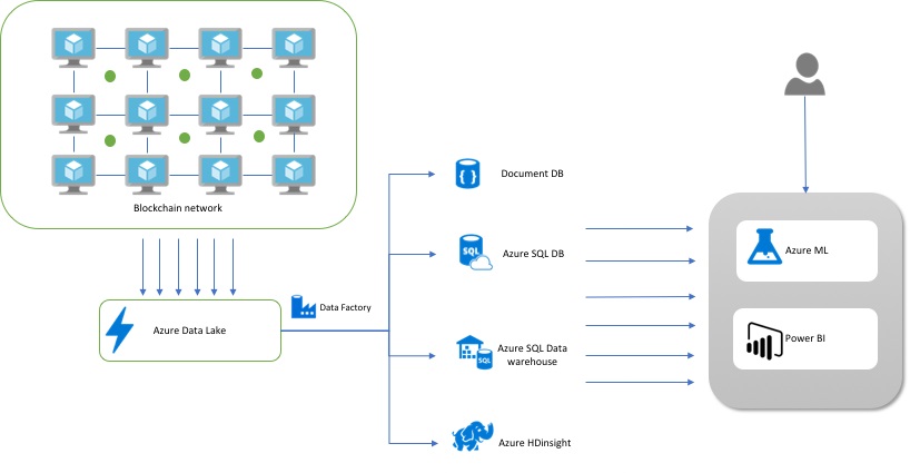 The following diagram is a simplistic view for integrating data analytics with Blockchain.